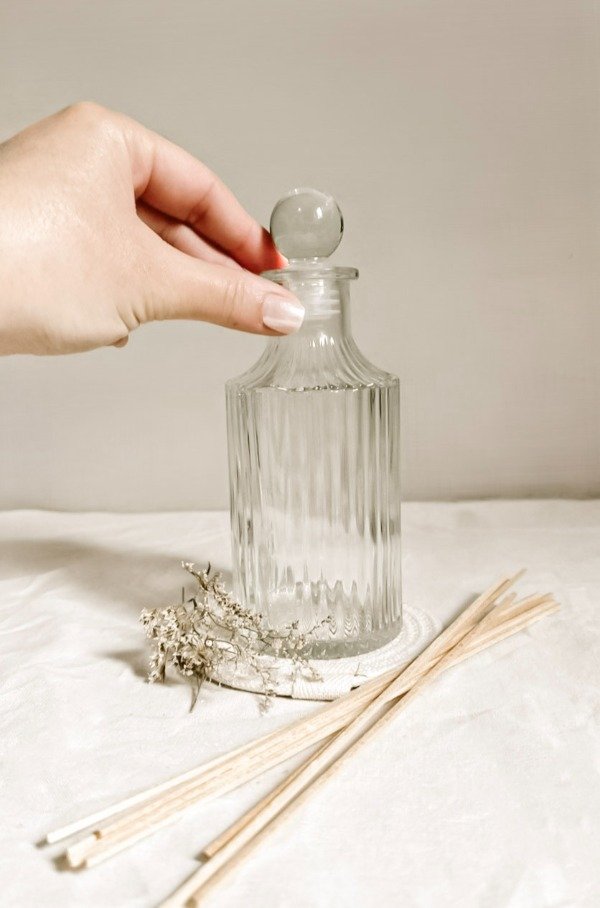 Este difusor de vidrio labrado destaca por su diseño elegante y artesanal, que aporta un toque de distinción y estilo.